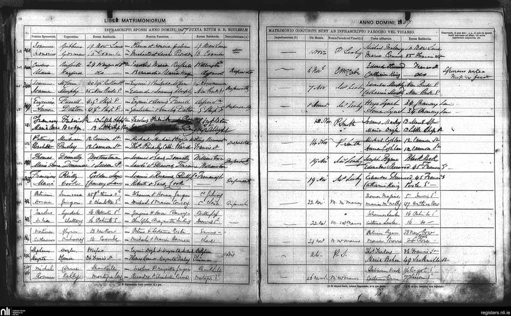St. Nicholas', Dublin city; County of Dublin; Archdiocese of Dublin. Marriages, Nov. 1857