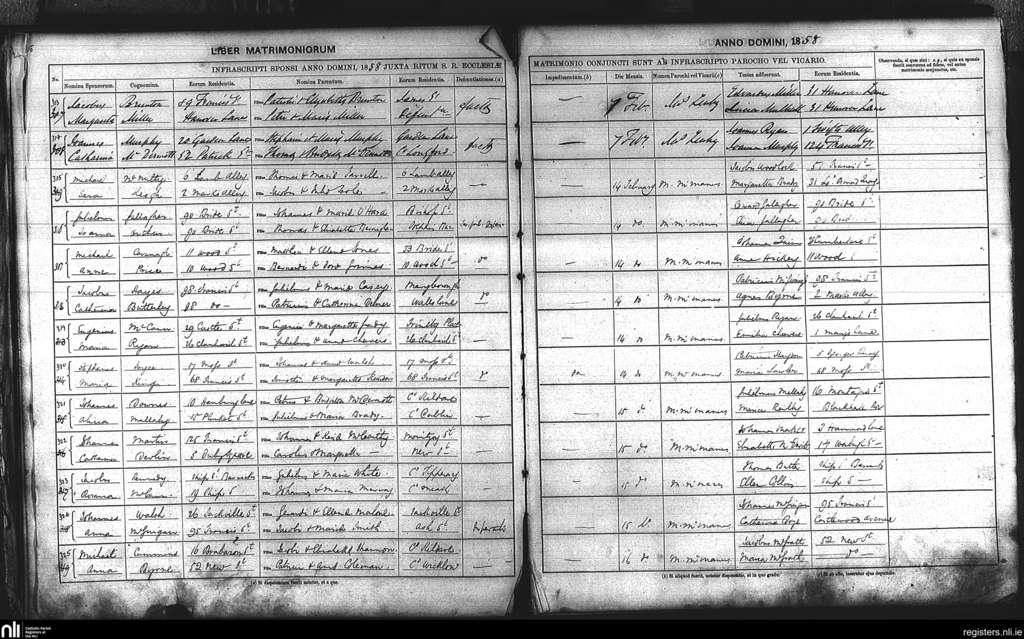 St. Nicholas', Dublin city; County of Dublin; Archdiocese of Dublin. Marriages, Feb. 1858