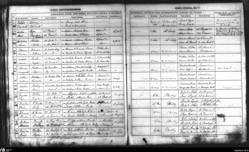 St. Nicholas', Dublin city; County of Dublin; Archdiocese of Dublin. Marriages, May 1858 to Jan. 1860