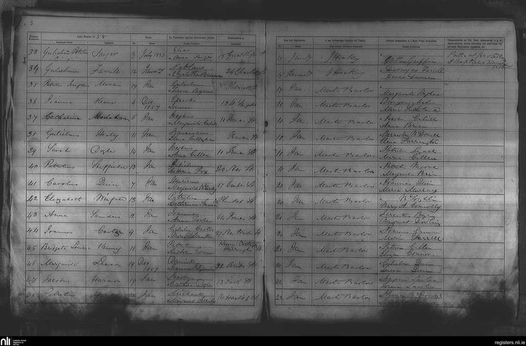 St. Nicholas', Dublin city; County of Dublin; Archdiocese of Dublin. Baptisms, Jan. 1858