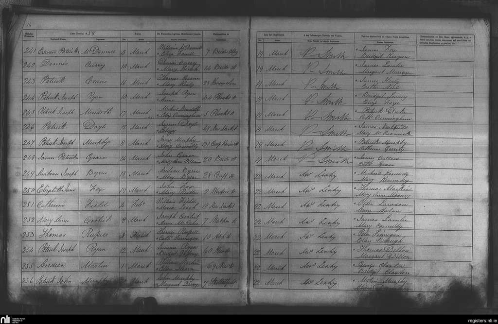 St. Nicholas', Dublin city; County of Dublin; Archdiocese of Dublin. Baptisms, Mar. 1858