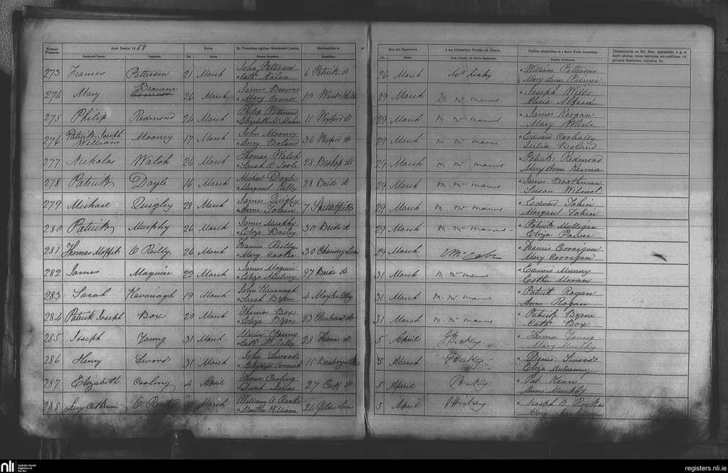 St. Nicholas', Dublin city; County of Dublin; Archdiocese of Dublin. Baptisms, Mar. 1858 to Apr. 1858