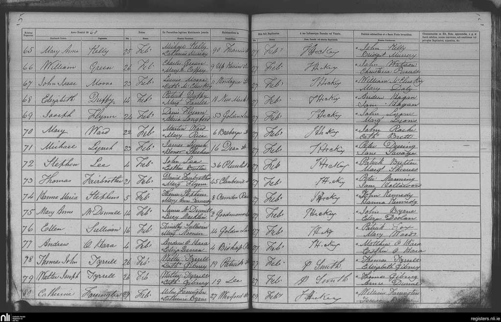 St. Nicholas', Dublin city; County of Dublin; Archdiocese of Dublin. Baptisms, Feb. 1860