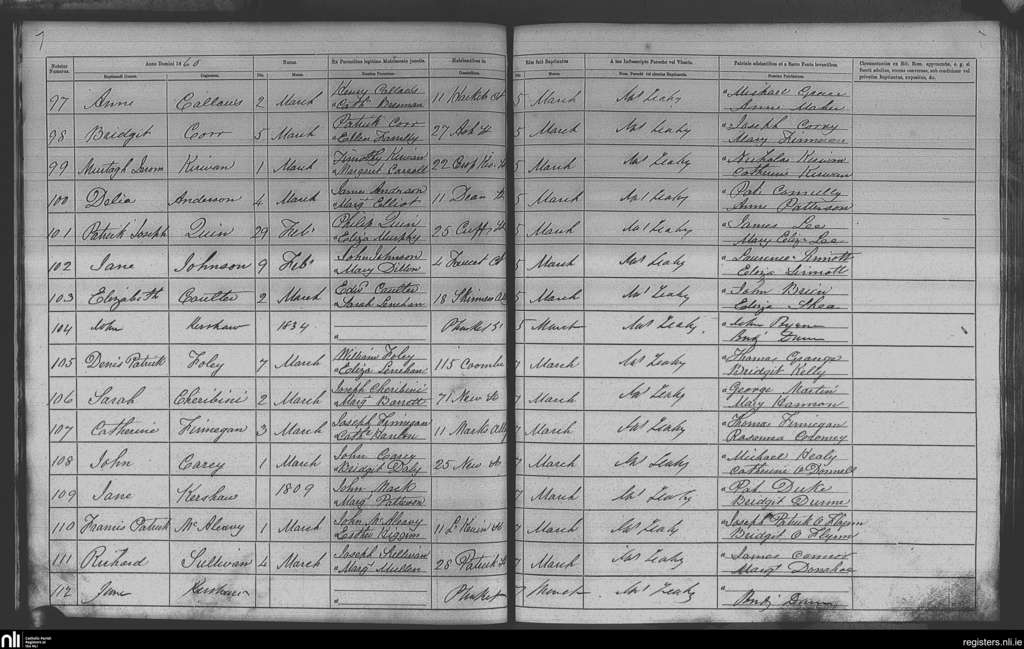 St. Nicholas', Dublin city; County of Dublin; Archdiocese of Dublin. Baptisms, Mar. 1860