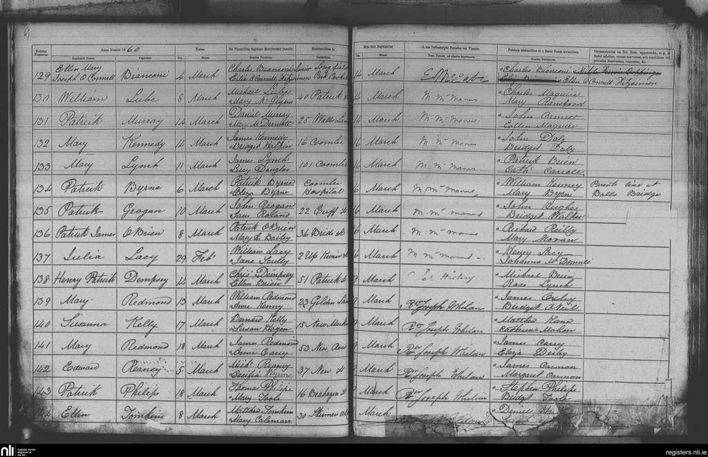 St. Nicholas', Dublin city; County of Dublin; Archdiocese of Dublin. Baptisms, Mar. 1860