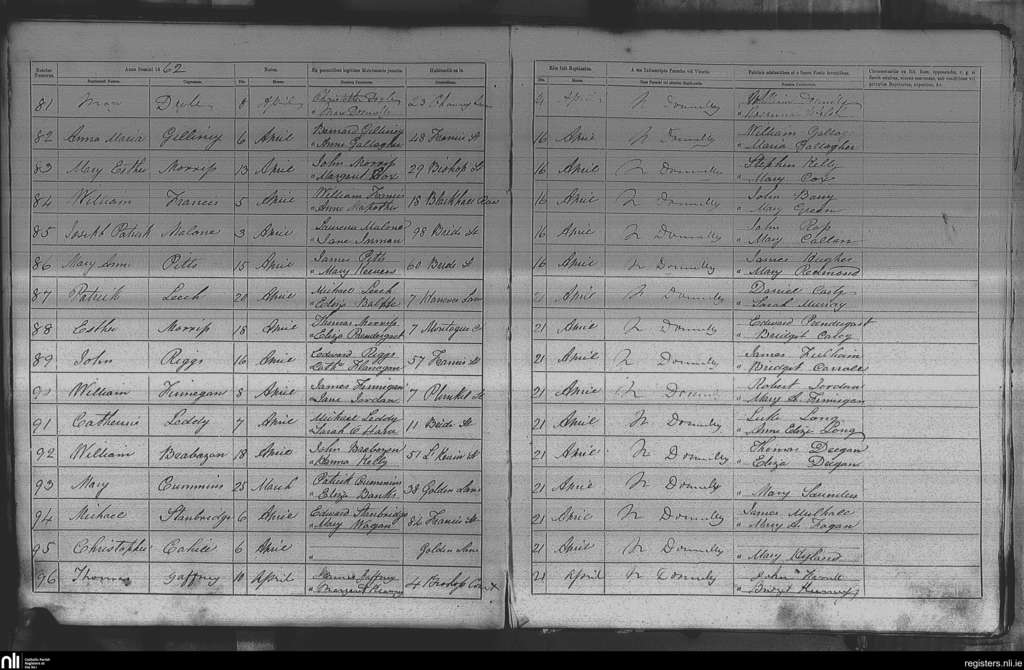 St. Nicholas', Dublin city; County of Dublin; Archdiocese of Dublin. Baptisms, Apr. 1862