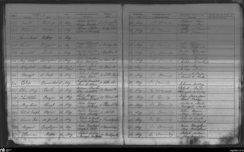 St. Nicholas', Dublin city; County of Dublin; Archdiocese of Dublin. Baptisms, May 1862
