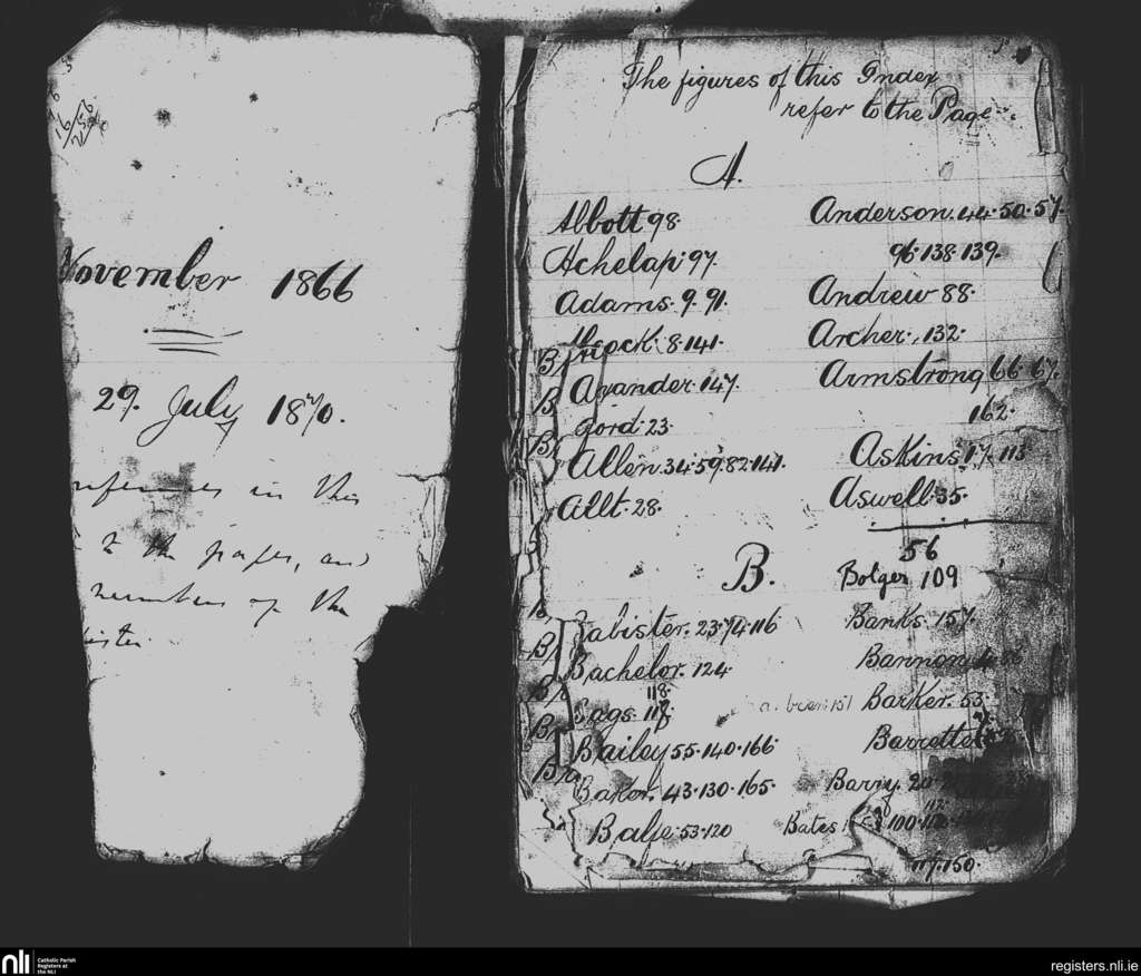 St. Nicholas', Dublin city; County of Dublin; Archdiocese of Dublin. Baptisms