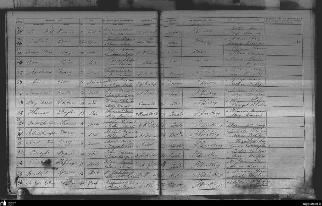 St. Nicholas', Dublin city; County of Dublin; Archdiocese of Dublin. Baptisms, Dec. 1866