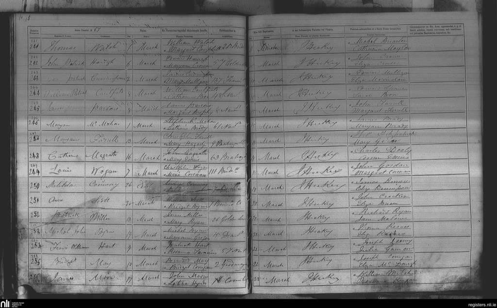 St. Nicholas', Dublin city; County of Dublin; Archdiocese of Dublin. Baptisms, Mar. 1867