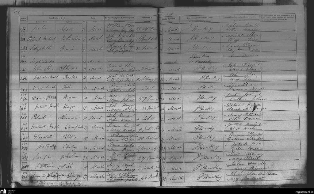 St. Nicholas', Dublin city; County of Dublin; Archdiocese of Dublin. Baptisms, Mar. 1867