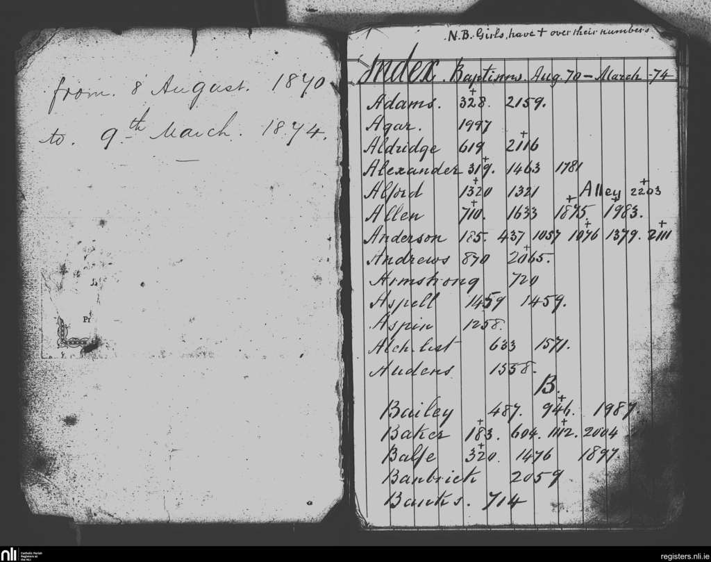 St. Nicholas', Dublin city; County of Dublin; Archdiocese of Dublin. Baptisms
