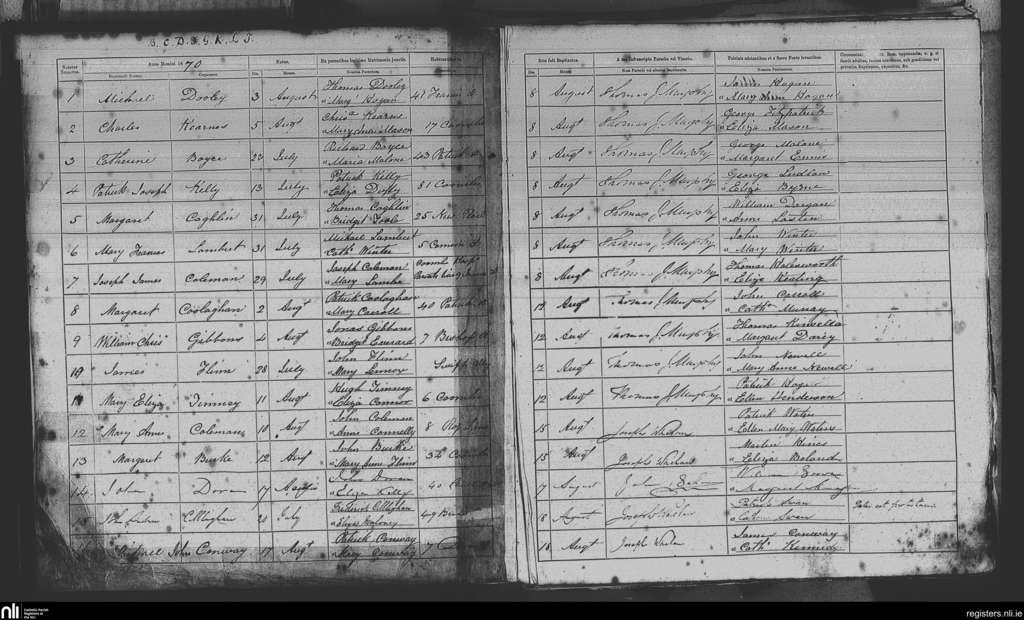 St. Nicholas', Dublin city; County of Dublin; Archdiocese of Dublin. Baptisms, Aug. 1870