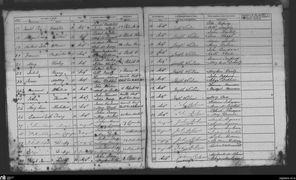 St. Nicholas', Dublin city; County of Dublin; Archdiocese of Dublin. Baptisms, Aug. 1870