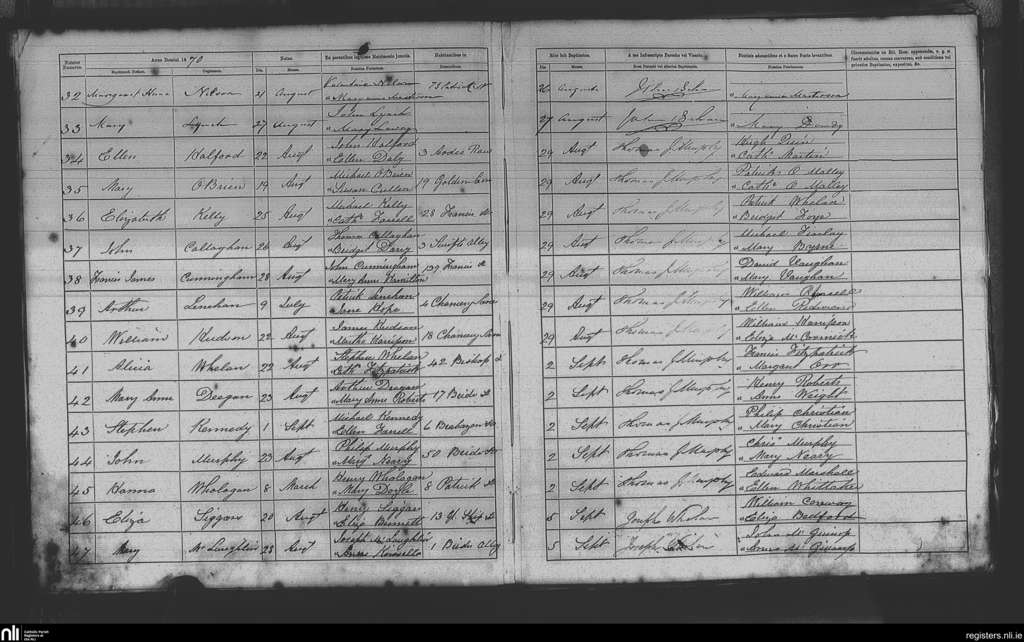 St. Nicholas', Dublin city; County of Dublin; Archdiocese of Dublin. Baptisms, Aug. 1870 to Sep. 1870