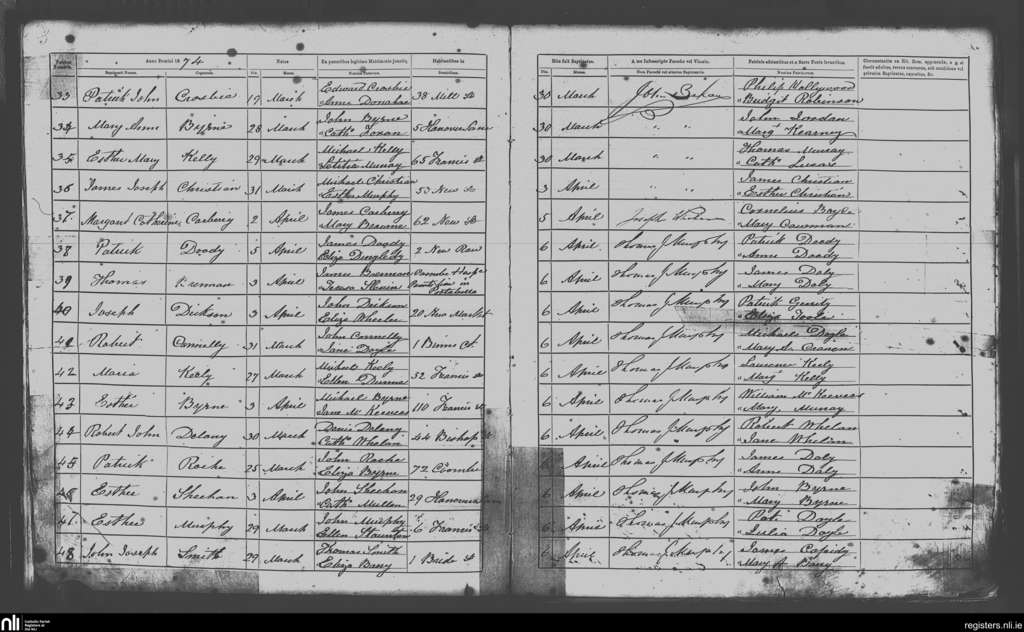 St. Nicholas', Dublin city; County of Dublin; Archdiocese of Dublin. Baptisms, Mar. 1874 to Apr. 1874