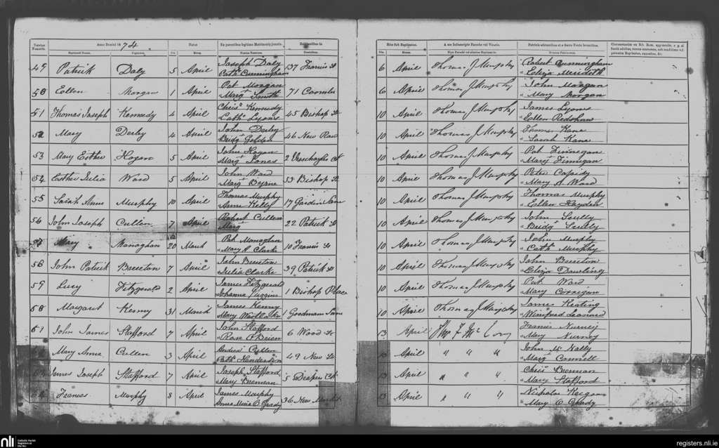 St. Nicholas', Dublin city; County of Dublin; Archdiocese of Dublin. Baptisms, Apr. 1874