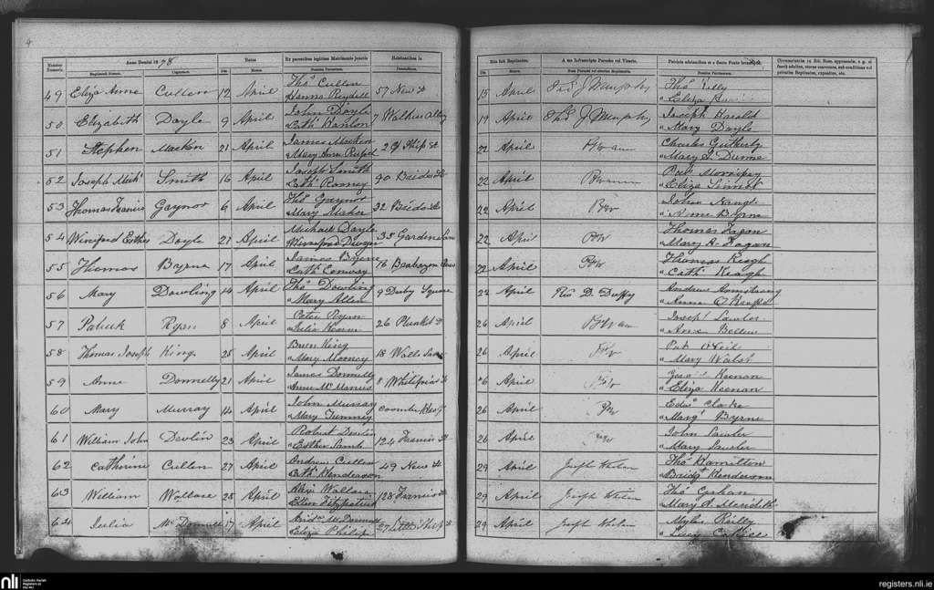 St. Nicholas', Dublin city; County of Dublin; Archdiocese of Dublin. Baptisms, Apr. 1878