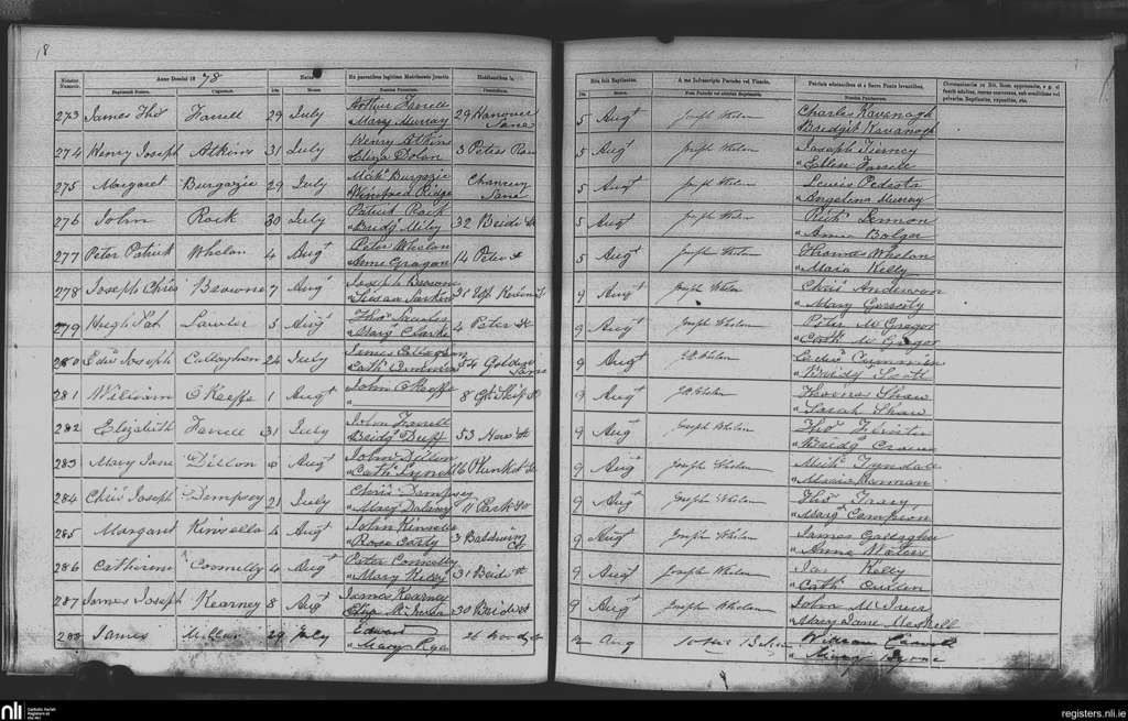 St. Nicholas', Dublin city; County of Dublin; Archdiocese of Dublin. Baptisms, Aug. 1878