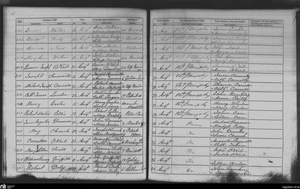 St. Nicholas', Dublin city; County of Dublin; Archdiocese of Dublin. Baptisms, Aug. 1878