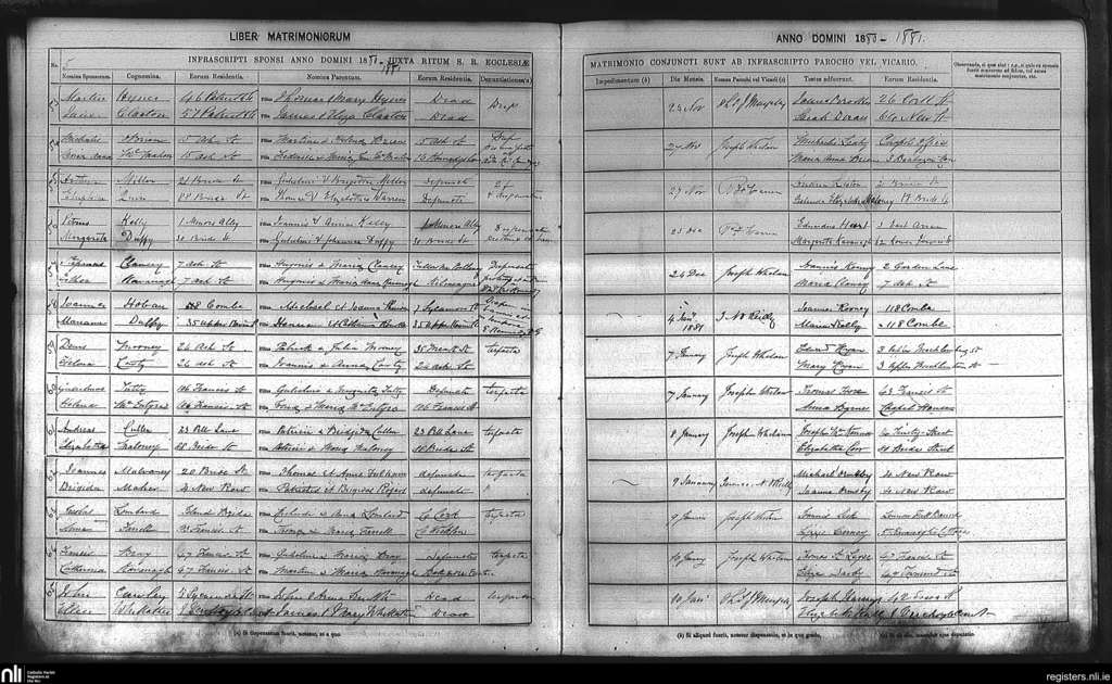 St. Nicholas', Dublin city; County of Dublin; Archdiocese of Dublin. Marriages, Nov. 1880 to Jan. 1881