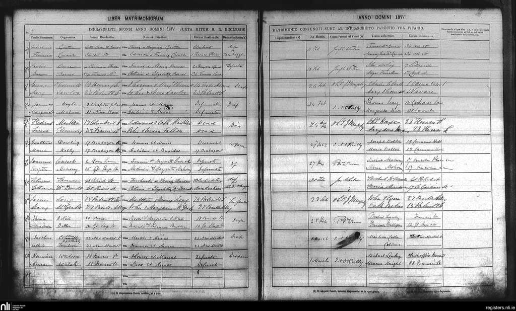 St. Nicholas', Dublin city; County of Dublin; Archdiocese of Dublin. Marriages, Feb. 1881 to Mar. 1881