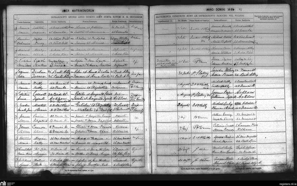 St. Nicholas', Dublin city; County of Dublin; Archdiocese of Dublin. Marriages, July 1881 to Aug. 1881