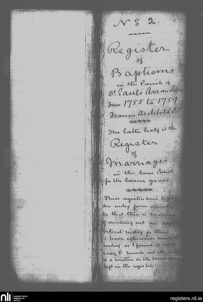 St. Paul's, Dublin city; County of Dublin; Archdiocese of Dublin. Baptisms, Marriages