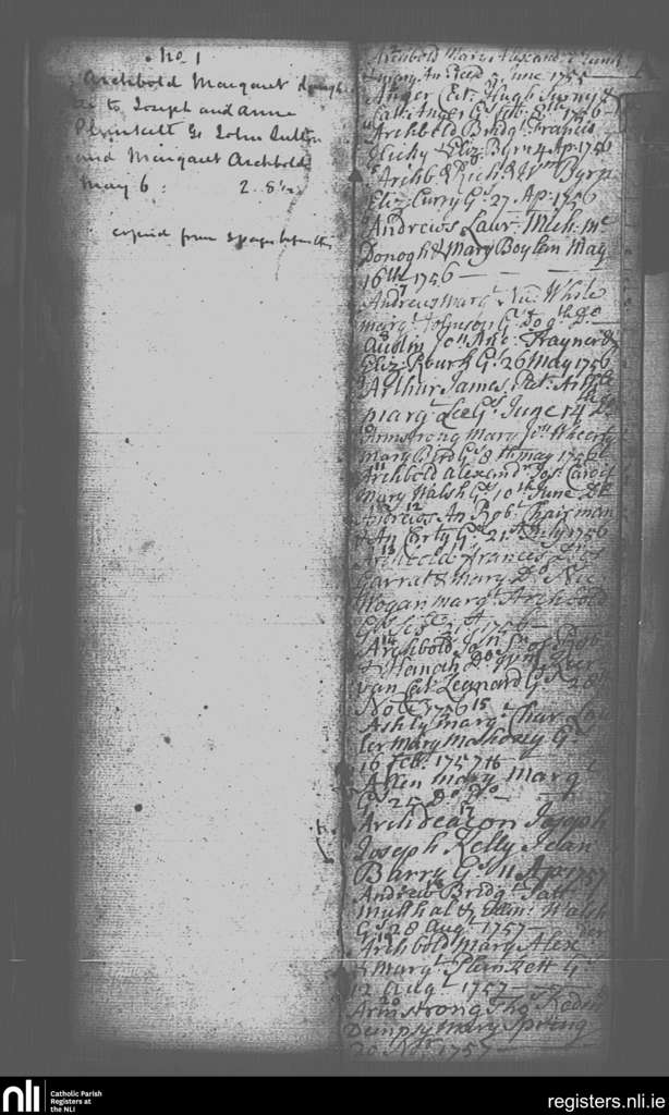 St. Paul's, Dublin city; County of Dublin; Archdiocese of Dublin. Baptisms, June 1755 to Nov. 1757