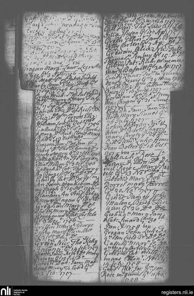 St. Paul's, Dublin city; County of Dublin; Archdiocese of Dublin. Baptisms, Aug. 1756 to Feb. 1758