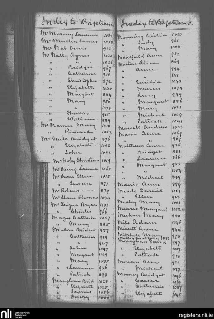 St. Paul's, Dublin city; County of Dublin; Archdiocese of Dublin. Baptisms