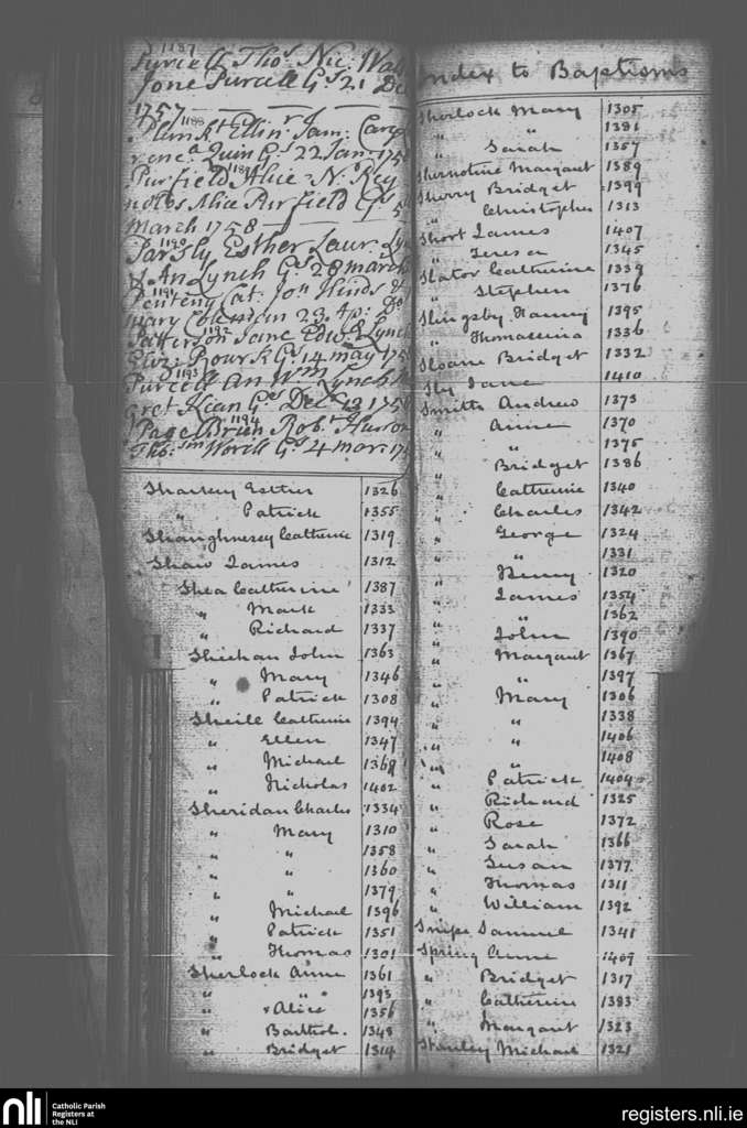 St. Paul's, Dublin city; County of Dublin; Archdiocese of Dublin. Baptisms, Dec. 1757 to May 1758