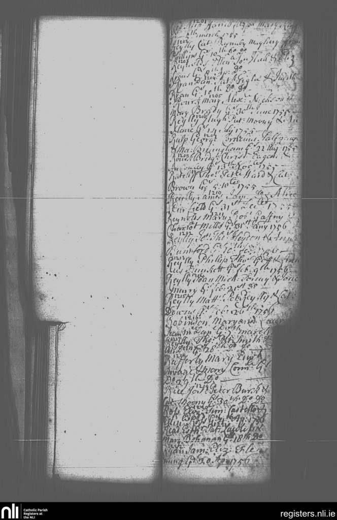 St. Paul's, Dublin city; County of Dublin; Archdiocese of Dublin. Baptisms, Mar. 1755 to Apr. 1756