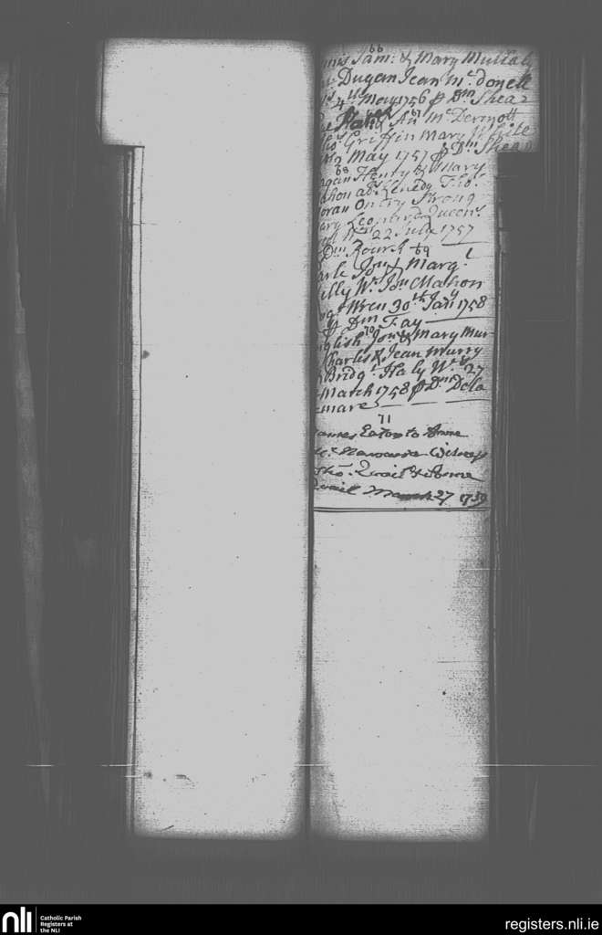 St. Paul's, Dublin city; County of Dublin; Archdiocese of Dublin. Baptisms, May 1756 to Mar. 1759