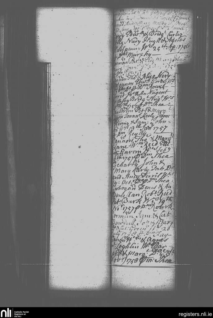 St. Paul's, Dublin city; County of Dublin; Archdiocese of Dublin. Baptisms, Mar. 1755 to Oct. 1758