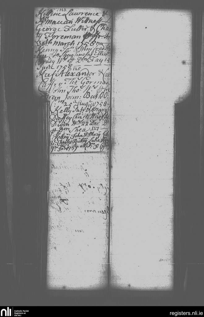 St. Paul's, Dublin city; County of Dublin; Archdiocese of Dublin. Baptisms, Mar. 1758 to Dec. 1758