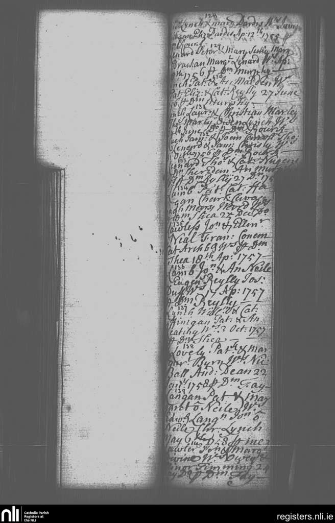 St. Paul's, Dublin city; County of Dublin; Archdiocese of Dublin. Baptisms, Apr. 1755 to May 1758