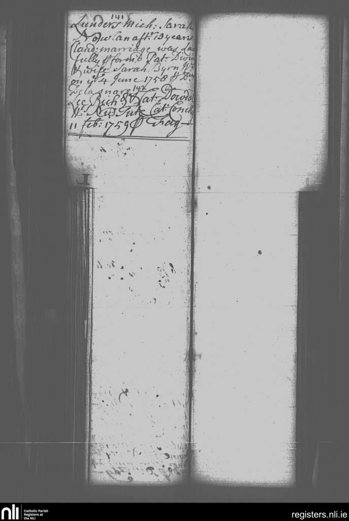 St. Paul's, Dublin city; County of Dublin; Archdiocese of Dublin. Baptisms, June 1758 to Feb. 1759