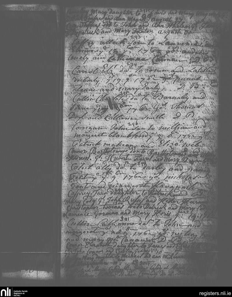 St. Paul's, Dublin city; County of Dublin; Archdiocese of Dublin. Baptisms, Aug. 1762 to Dec. 1762