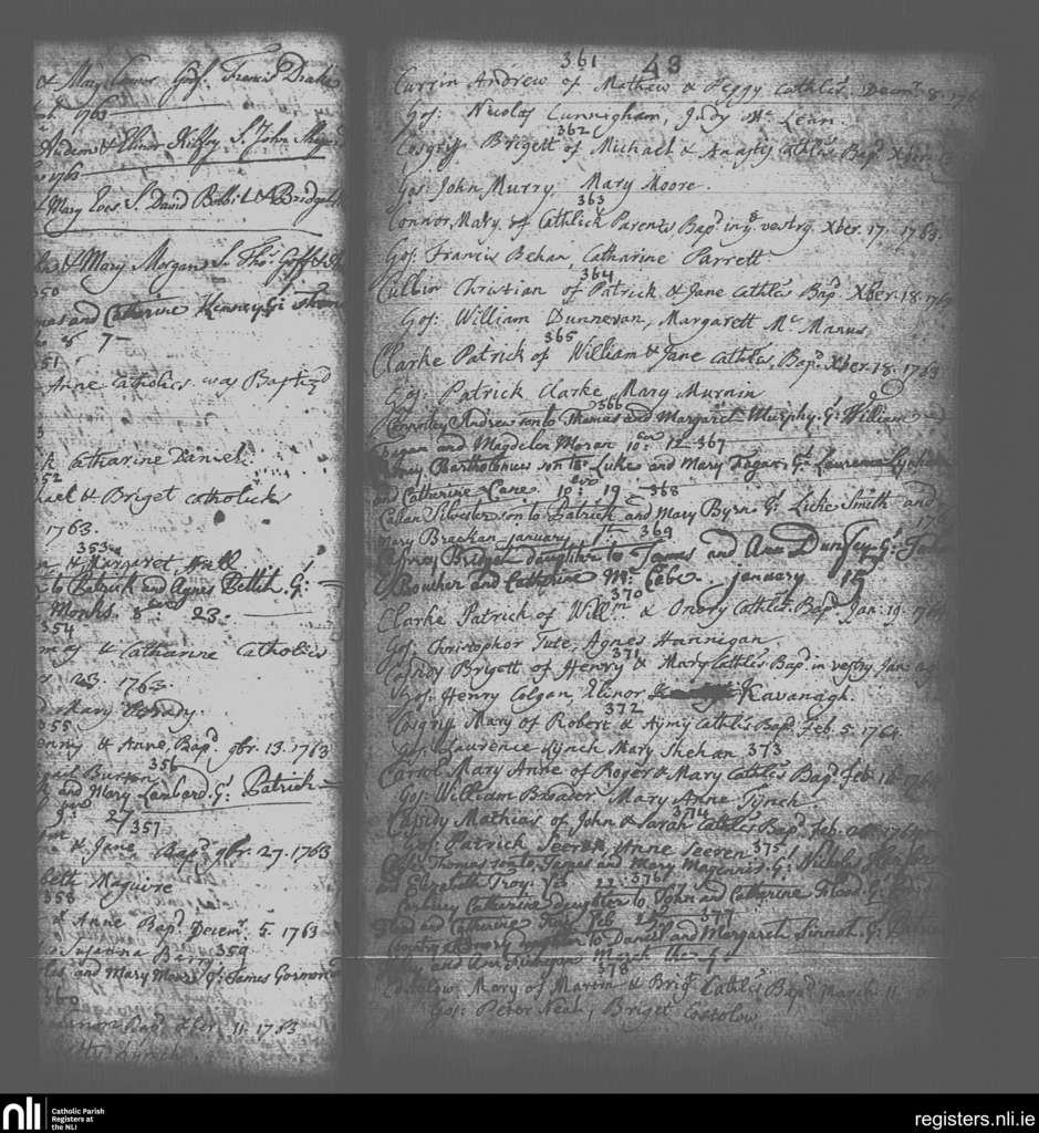 St. Paul's, Dublin city; County of Dublin; Archdiocese of Dublin. Baptisms, Dec. 1763 to Mar. 1764