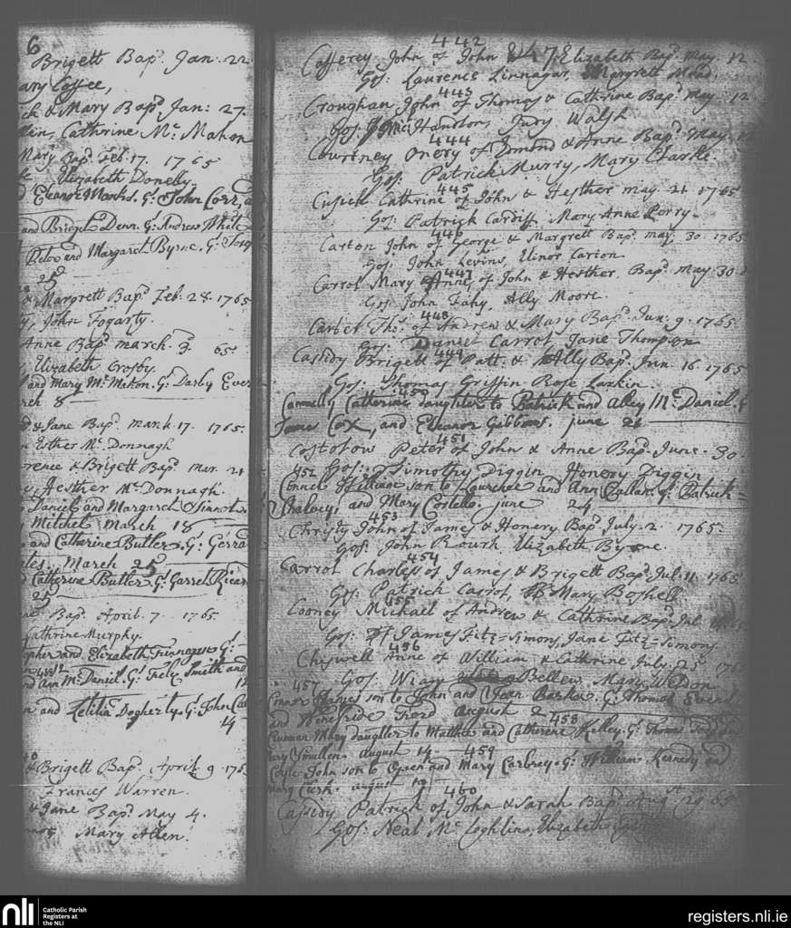 St. Paul's, Dublin city; County of Dublin; Archdiocese of Dublin. Baptisms, May 1765 to Aug. 1765