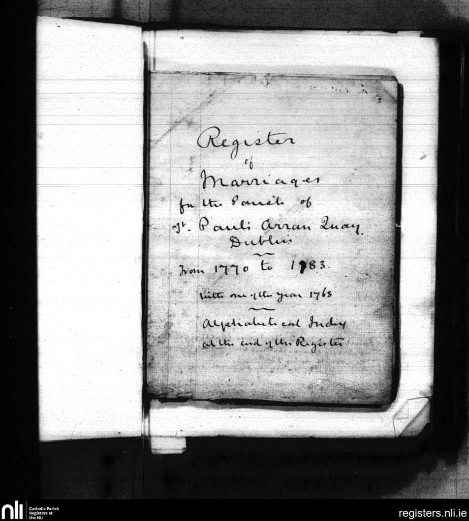 St. Paul's, Dublin city; County of Dublin; Archdiocese of Dublin. Baptisms, Marriages