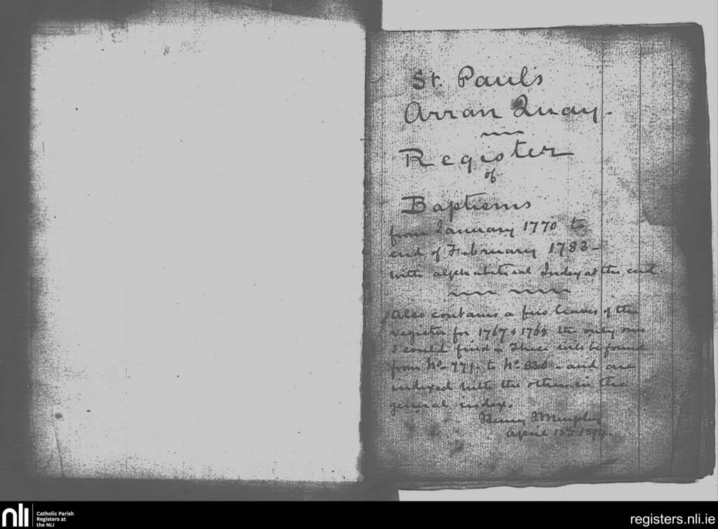 St. Paul's, Dublin city; County of Dublin; Archdiocese of Dublin. Baptisms