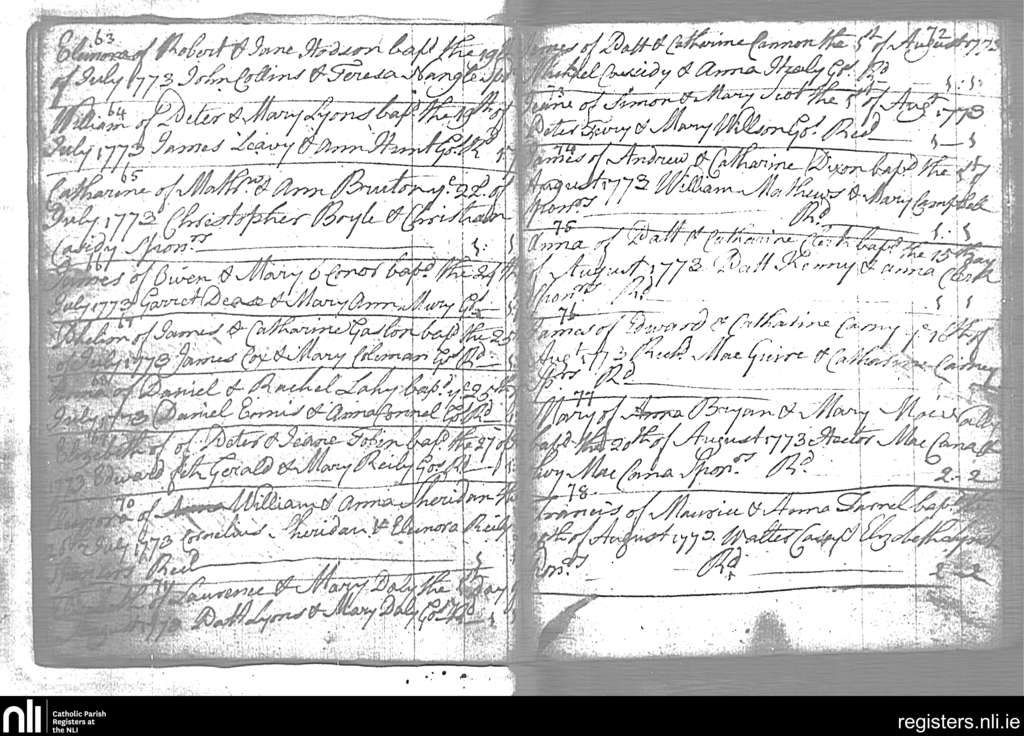 St. Paul's, Dublin city; County of Dublin; Archdiocese of Dublin. Baptisms, July 1773 to Aug. 1773