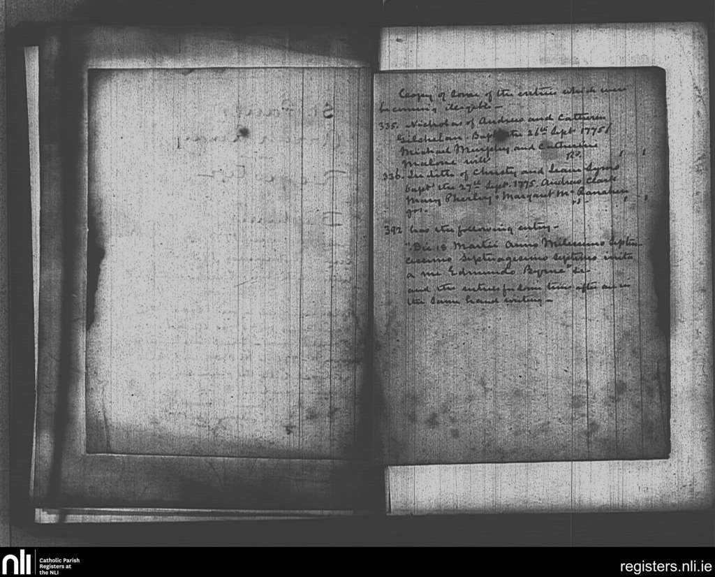 St. Paul's, Dublin city; County of Dublin; Archdiocese of Dublin. Baptisms, Sep. 1775