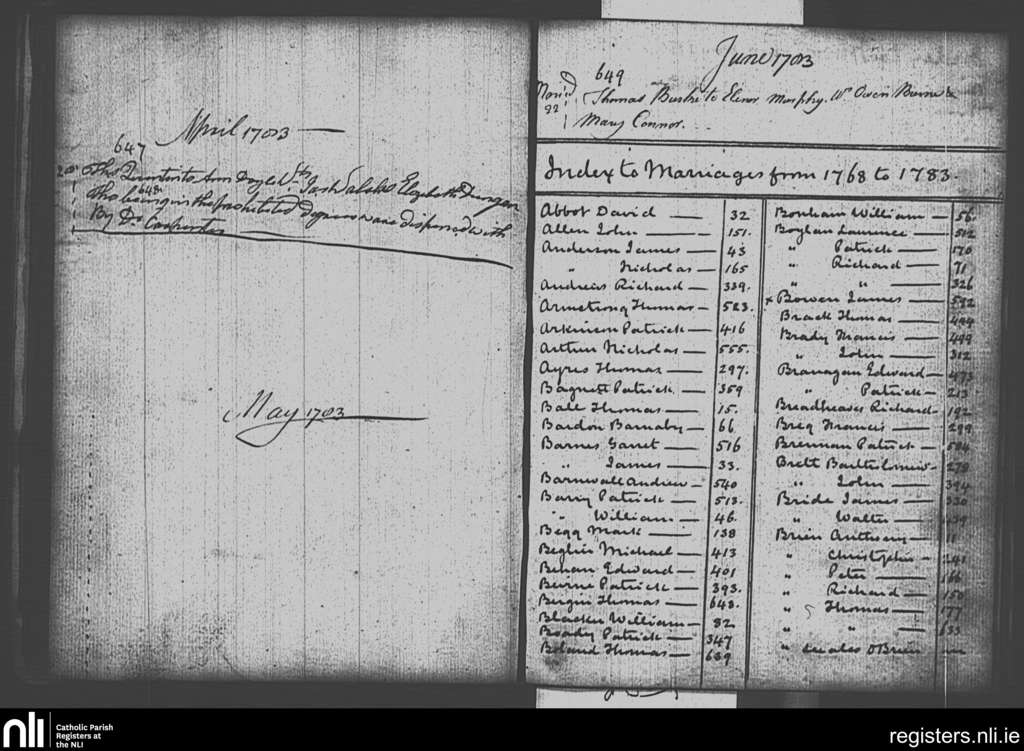 St. Paul's, Dublin city; County of Dublin; Archdiocese of Dublin. Marriages, Apr. 1783 to June 1783