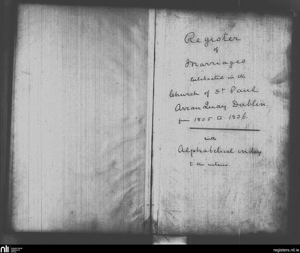 St. Paul's, Dublin city; County of Dublin; Archdiocese of Dublin. Marriages