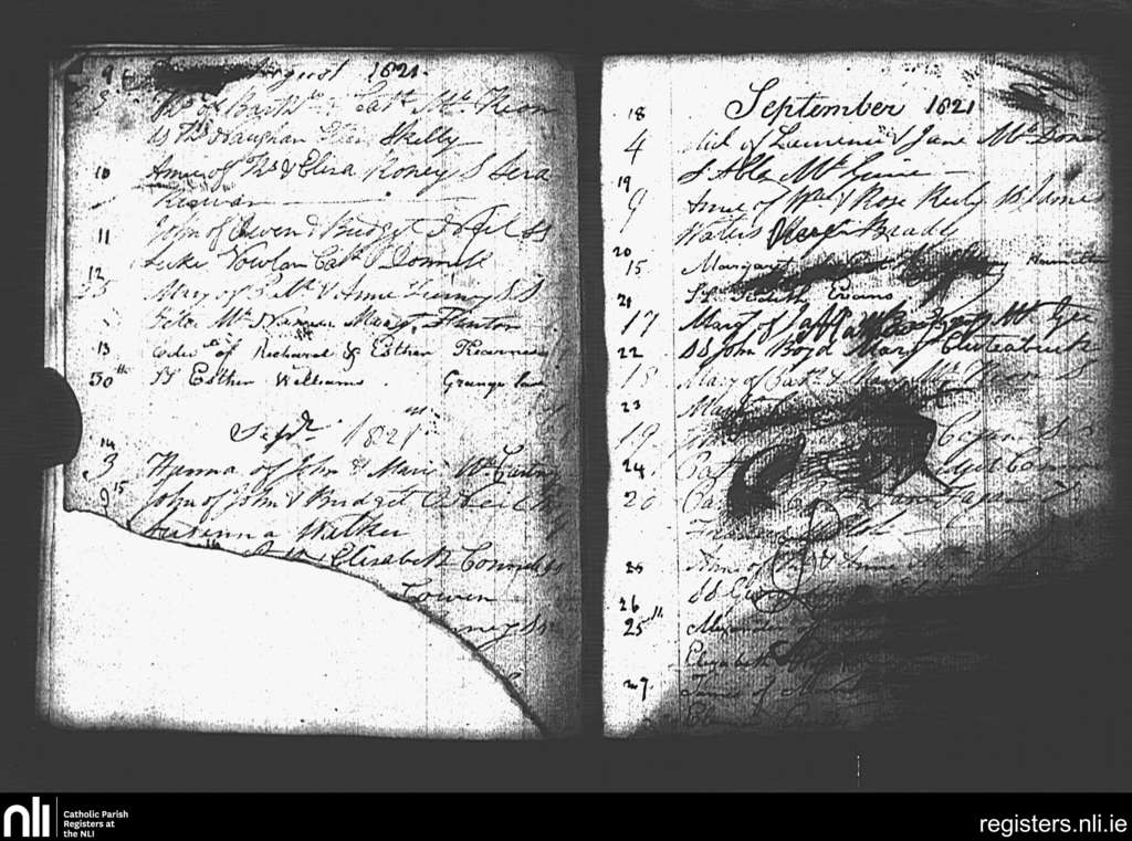 St. Paul's, Dublin city; County of Dublin; Archdiocese of Dublin. Baptisms, Aug. 1821 to Sep. 1821