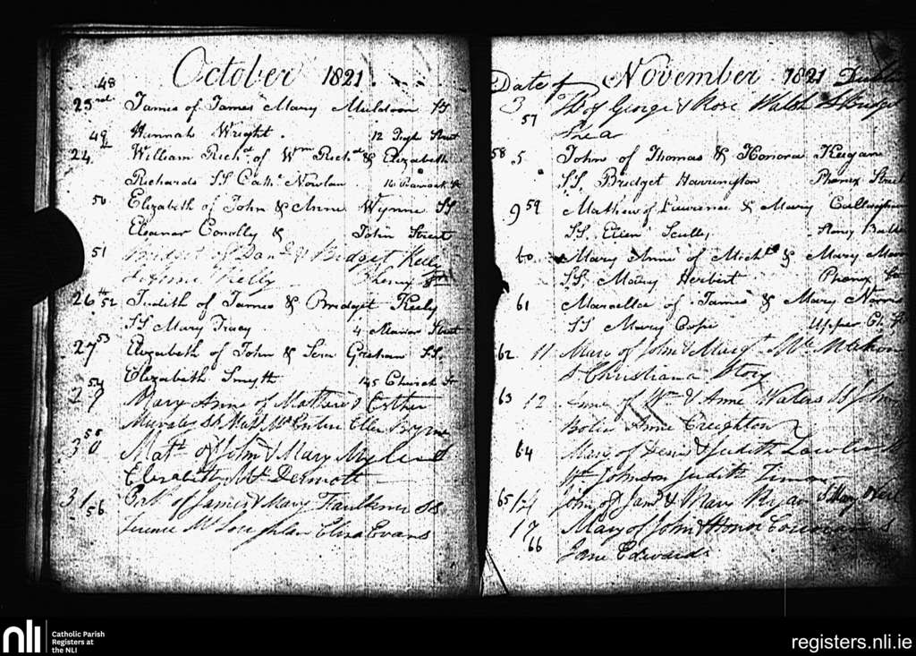 St. Paul's, Dublin city; County of Dublin; Archdiocese of Dublin. Baptisms, Oct. 1821 to Nov. 1821