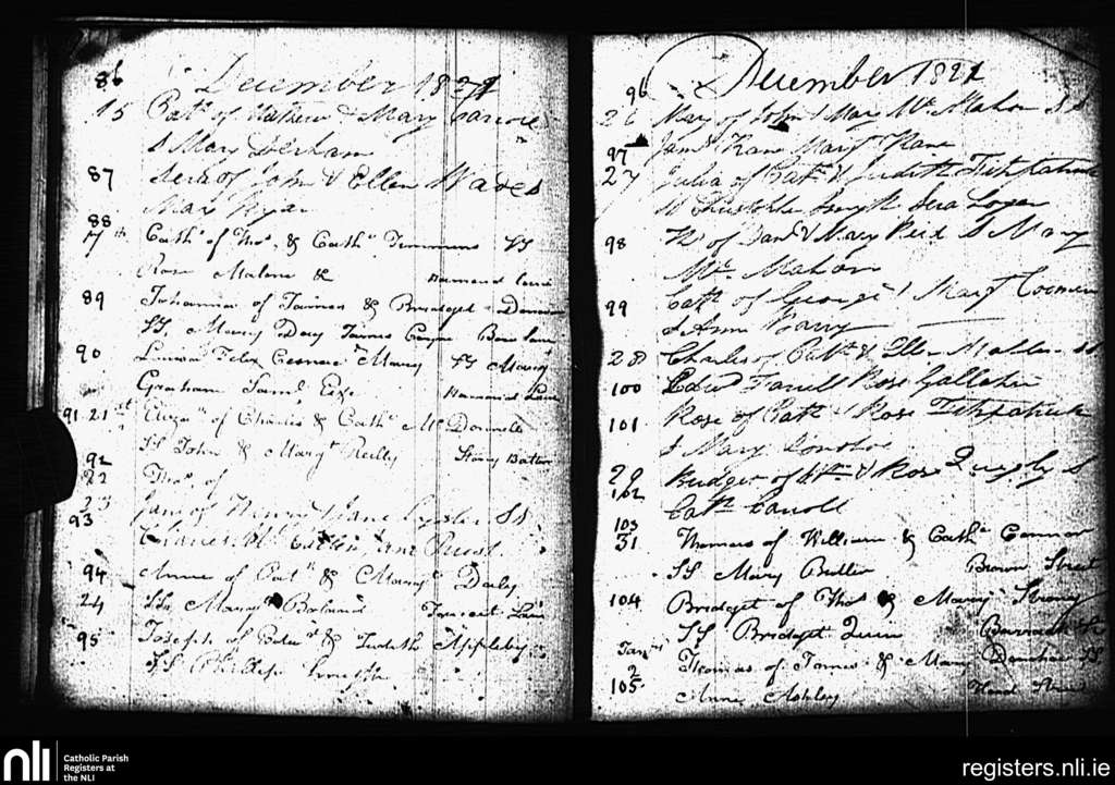 St. Paul's, Dublin city; County of Dublin; Archdiocese of Dublin. Baptisms, Dec. 1821 to Jan. 1822